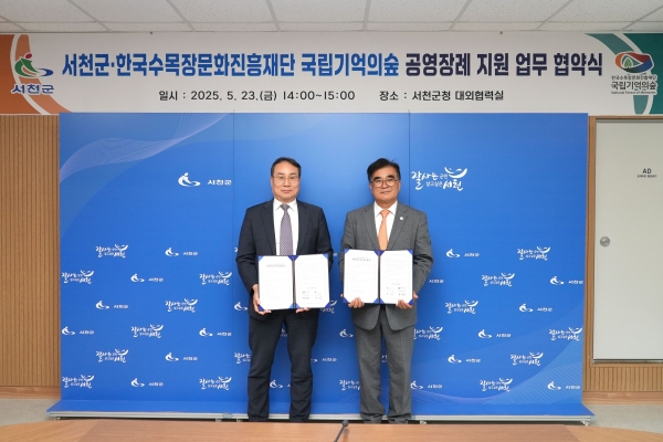 이번 협약으로 서천군은 무연고 사망자의 장례에 대한 행정적 지원과 공영장례 절차를 전담하고 국립기억의숲은 자연 친화적인 수목장림을 제공해 고인에게 존엄한 추모 환경을 제공한다.