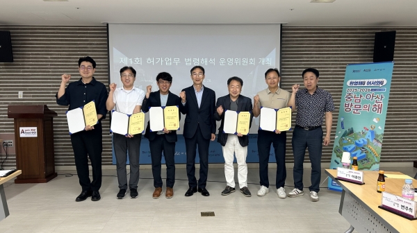 [충청뉴스큐] 아산시가 26일 시청 중회의실에서 ‘제1회 허가 업무 법령해석 운영위원회’ 위원을 위촉하고 첫 회의를 개최했다.