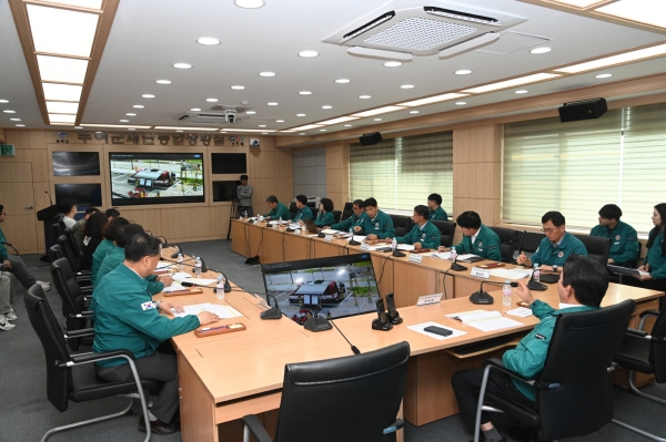 재난종합상황실에서는 시간대·단계별 진행되는 가상 상황에 따라 협업 부서와 유관기관이 대응 및 피해 수습, 복구 방안에 대해 토론하며 재난 대처 능력을 점검했다.