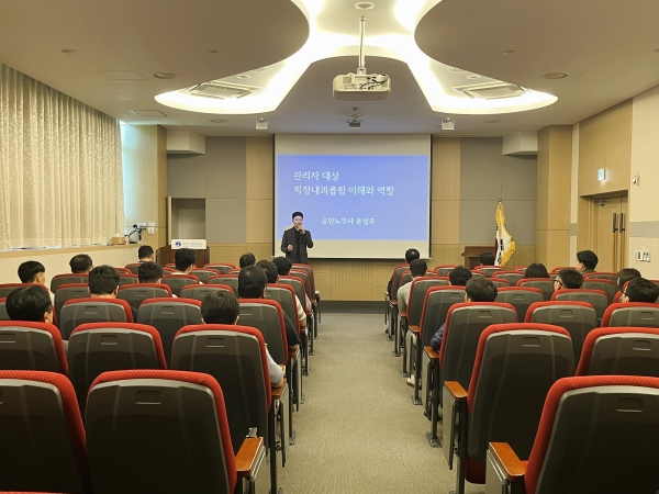 이번 교육은 관계법령에 따라 ‘지위 또는 관계의 우위’에 있는 관리직 직원을 대상으로 사전 예방을 위해 추진됐으며 ‘직장 내 괴롭힘’에 대한 이해와 관리자의 역할을 주제로 진행됐다.