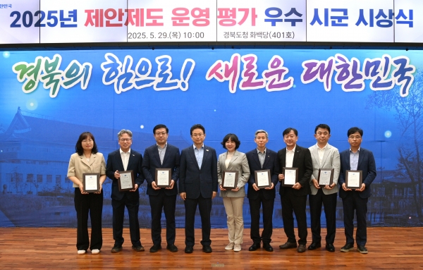 [충청뉴스큐] 경상북도는 29일 경북도청 화백당에서 이철우 도지사와 22개 시군 부단체장 등이 참석한 가운데 2025년 제안제도 운영 평가 우수 시군 시상식을 개최했다.