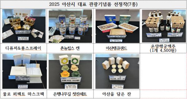 [충청뉴스큐] 아산시가 ‘2025 아산시 대표관광 기념품 공모전’ 최종 수상작을 발표하고 향후 상품화 지원과 홍보 강화를 위한 다양한 후속 지원사업을 본격 추진한다.