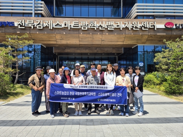 [충청뉴스큐] 금산군농업기술센터는 지난 4일 스마트작물재배과정 교육생 20명이 참여한 가운데 전북 완주군 국립원예특작과학원 및 김제시 스마트팜혁신밸리를 방문해 스마트농업 현장견학에 나섰다.