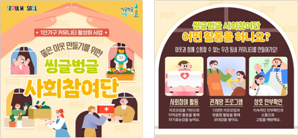 송미정 서울시 1인가구지원과장은 “외로움 없는 서울의 일환으로 진행되는 ‘씽글벙글 사회참여단’은 1인 가구가 가장 필요로 하는 상대에 대한 ‘관심’에서 출발하는 프로그램”이라며 “고립감을 느끼는 1인 가구가 이웃에게 관심을 갖고 관계망을 형성, 적극적으로 사회에 참여할 수 있도록 체감도 높은 사업을 추진해 나가겠다”고 말했다.