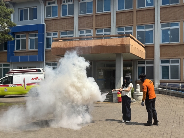 이날 총 40여명의 군청 직원과 소방대원이 참여한 가운데 화재 발생을 가정한 119 신고 및 화재 전파를 시작으로 자위소방대원이 자체 소방시설인 소화기와 옥내소화전을 활용한 초기 화재 진화를 연습했다.