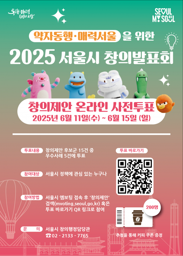 시는 시민의 일상을 바꾸는 시정 아이디어를 발굴하기 위해 지난 4월 21일부터 5월 21일까지 서울시, 자치구, 투출기관 직원들을 대상으로 ‘2025년 2차 창의제안’ 공모를 진행했다.