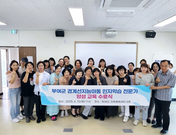 [충청뉴스큐] 부여군은 지난 10일 가족행복센터에서 ‘경계선지능 아동 인지학습 전문가 양성과정’ 수료식을 개최하고 총 24회차에 걸친 교육 과정을 성공적으로 마무리했다고 12일 밝혔다.