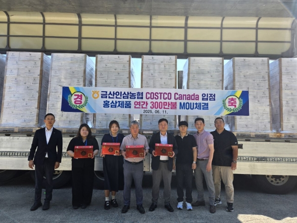 지난 11일 부여군 은산면 소재 금산인삼농협 가공공장에서 인삼가공제품 3,600세트의 캐나다 코스트코 두 번째 수출을 축하하는 출고식이 열렸다.