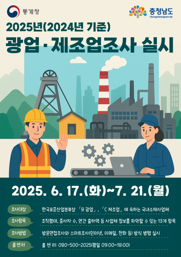 [충청뉴스큐] 금산군은 오는 6월 17일부터 7월 21일까지 관내 광업·제조업체 173개소를 대상으로 2025년 광업·제조업조사를 실시한다.