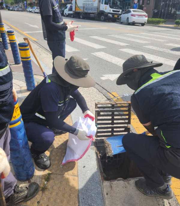 관내 상습 침수 우려지역 빗물받이를 중점으로 빗물받이 내 담배꽁초와 낙엽, 쓰레기 등을 청소했다.