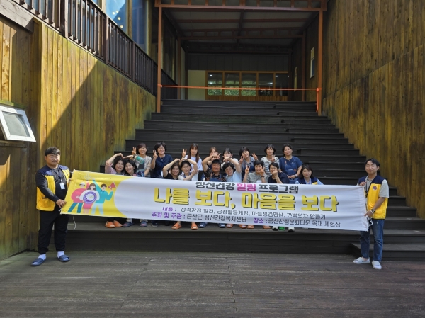 [충청뉴스큐] 금산군보건소와 금산군정신건강복지센터는 오는 21일 중장년 서포터즈 단원과 중장년 지역민을 대상으로 마음 치유와 스트레스 해소를 위한 힐링 프로그램 ‘나를 위한 타임’을 남이면 금산산림문화타운에서 진행한다.