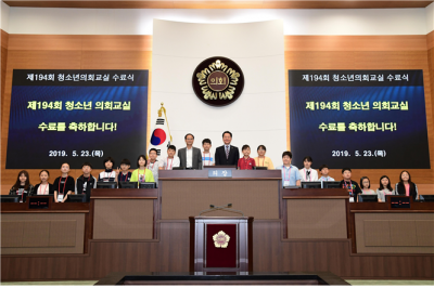 한편 제194회 청소년 의회교실에서는 자신만만 스피치를 통해 최다득표를 얻은 어린이 시의원이 의장을 맡았으며, ‘수업시간 스마트폰 사용제한에 관한 조례안’을 상정해 팽팽한 찬성·반대토론 끝에 처리결과 재석 87명, 찬성 39명, 반대 39명, 기권 9명으로 본 안건은 부결됐다.