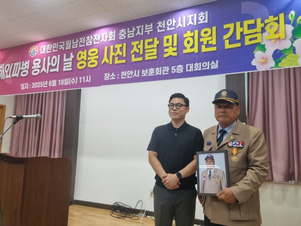 [충청뉴스큐] 천안시는 지난 18일 ㈜서북이 국가유공자에게 증명사진이 담긴 ‘영웅의 초상’ 액자 전달식을 개최했다.
