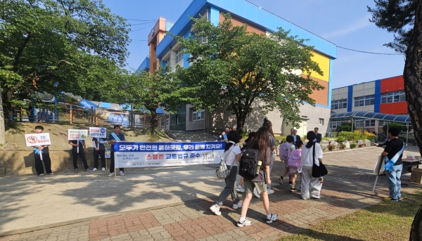 참여자들은 등굣길 어린이들에게 교통안전 홍보물품을 나눠주며 △보행 중 휴대전화 또는 이어폰 사용 금지 △무단횡단 금지 △보행신호 준수 및 횡단보도 건너기 전 좌우 살피기 등 보행 안전수칙을 알렸다.