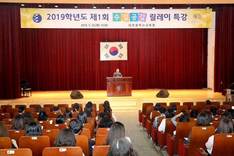 대전광역시교육청(교육감 설동호)은 5월부터 11월까지(총 6회, 15:30~18:00) 시교육청 대강당에서 대전지역 초등 교원을 대상으로 ‘2019학년도 수업공감 릴레이 특강’을 운영한다고 밝혔다. 수업공감 릴레이 특강은 전문가 초청 특강 운영으로 교실수업개선에 대한 공감대를 형성하고, 학생 참여형 수업 및 교사성장 지원을 강화하며, 이를 통해 4차 산업혁명 시대 대비 교육에 대한 교원의 인식을 전환하고, 학생이 즐겁게 공부하고 교사가 만족하며 가르칠 수 있는 공감대를 형성할 계획이다. 특히, 2018년 릴레이 특강은 총 7회, 1,786명이 참여하였으며, 매회 200명이상의 높은 참여율 및 99%의 만족도가 보여주듯, 초등교원들의 사랑을 많이 받았던 사업이고, 올해에도 6회(5, 6, 7, 9, 10, 11월)의 릴레이 특강과 수업 축제 1회가 진행되며, 희망하는 초등교원은 모두 참여할 수 있다. ‘2019학년도 제1회 수업공감 릴레이 특강’은 23일 15시 시교육청 대강당에서 초등교원 340여명을 대상으로 실시했으며, 학생의 배움과 교사의 성장을 지원하기 위한 초석을 다지기 위해 ‘행복한 교사가 세우는 신흥 학교’를 주제로 숙명여자대학교 조벽 석좌교수가 강의했다. 대전교육청 설동호 교육감은 “대전교육청은 교원의 자발적 참여 및 주도성을 바탕으로 현장중심 교실수업개선을 지원하기 위해 노력하고 있다”며 “앞으로도 수업공감 릴레이 특강을 통해 학생이 즐겁게 공부하고 교사가 만족하며 가르칠 수 있는 공감대를 형성하여 미래인재 교육을 강화해 나가고자 최선을 다하겠다”고 말했다.