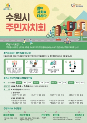 수원시 관계자는 “주민 스스로 마을을 일굴 수 있는 ‘주민자치회’에 많은 관심과 참여 부탁드린다”고 말했다.