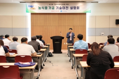 농식품가공 기술이전 설명회는 경기도가 개발한 농식품 가공 신기술의 민간 이전을 통해 농산물 소비촉진과 농가 소득을 향상시킬 목적으로 추진하고 있는 사업이다.