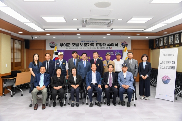 박정현 부여군수는 “국가를 위해 헌신하시고 보훈 발전을 위해 노력해 주신 수상자들께 감사하고 축하드린다”며 “부여군은 앞으로도 국가유공자와 보훈가족의 영예로운 삶을 지원하고 예우에 소홀함이 없도록 최선을 다하겠다”고 말했다.