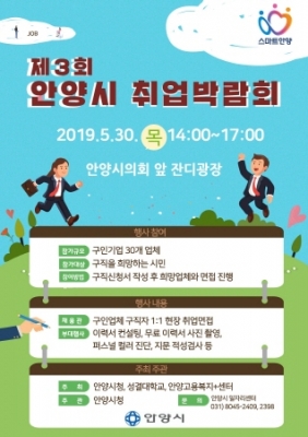 [충청뉴스큐] 안양시는 제3회 취업박람회를 오는 30일 오후 2시 시의회 앞 잔디광장에서 개최한다고 밝혔다.