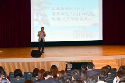 김 소장은 ‘소프트웨어 퍼스트/블록체인 퍼스트 대전환, 퀀텀 점프하는 광주광역시’라는 주제의 강연을 통해 “다른 도시의 길을 따라가서는 희망을 만들기 쉽지 않다”고 강조했다.
