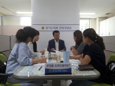 [충청뉴스Q] 경기도의회 안양상담소 김성수의원은 지난 8월 31일 오전11시 만안구 어머니폴리스단원 4명이 참석한 가운데 제3회 안전?안심 문화페스티벌에 대한 사업추진 배경과 계획 등에 대한 설명을 듣고 지원 등에 관한 간담회를 가졌다.