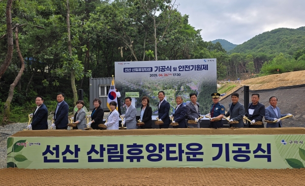 [충청뉴스큐] 경상북도와 구미시는 26일 선산 체육공원 솔밭 물놀이장 주변에서 ‘선산 산림휴양타운 조성 사업’의 기공식을 개최했다.