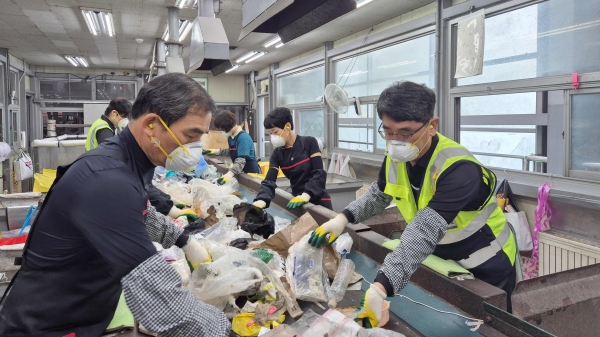 이날 신 사장은 2시간 동안 현장 근로자들과 함께 재활용품을 선별하며 업무 강도와 안전 문제, 작업 환경 전반에 대해 몸소 경험했다.
