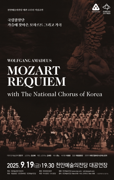 [충청뉴스큐] 천안문화재단은 천안예술의전당 개관 13주년을 맞아 오는 9월 19일 국립합창단 ‘가을에 찾아온 모차르트 그리고 가곡’ 공연을 선보인다고 1일 밝혔다.