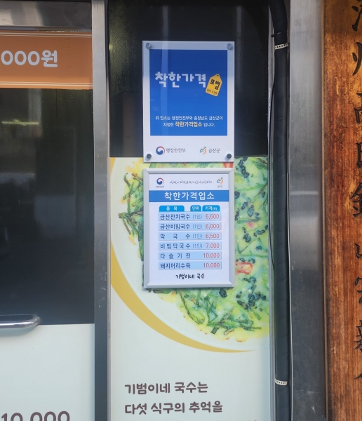 현재 금산군의 착한가격업소는 △백설식당 △손맛추어탕 △만두마당 △인삼골장터순대 △국수꽃 △상리국수 △모아카페 △기범이네국수 △소미연 등 9곳이 지정돼 운영 중이다.