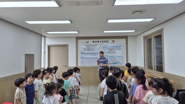 [충청뉴스큐] 예산군은 지난 1일 예산 금오어린이집 원생과 교사 등 40여명이 예산정수장을 방문해 수돗물 생산 과정을 직접 체험하는 견학 프로그램에 참여했다고 밝혔다.