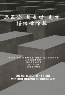 충정공 조병세 선생 어록비 제막식은 어록비 건립추진위원회 주관으로 추진되며, 제막식 참석자 편의제공을 위해 천안역과 독립기념관을 연결하는 셔틀버스가 오전 9시 30분, 10시 30분 천안역에서 출발예정이다.