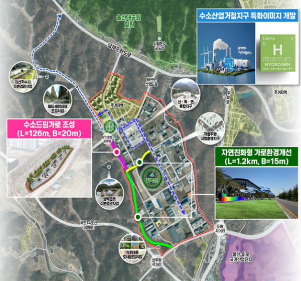 울산경자청은 한국산업단지공단과 7월 내 협약을 체결하고 국비가 교부되는 대로 특화디자인도입과 기본 및 실시설계를 거쳐 내년부터 2027년까지 ‘수소드림가로 조성’과 ‘자연친화형 가로환경개선사업’을 시행할 예정이다.