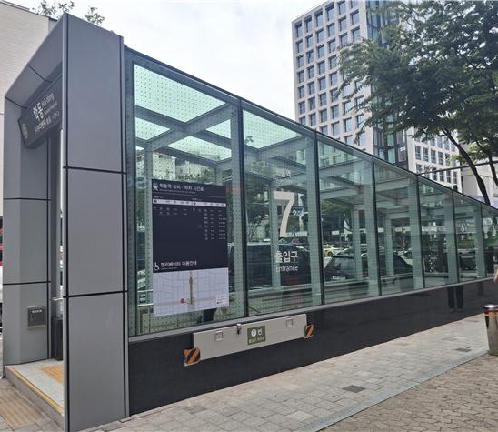 [충청뉴스큐] 서울특별시의회 교육위원회 이새날 의원은 지하철 7호선 학동역 7번 출입구에 시민 편의를 위한 ‘서울시 표준형 캐노피 설치 공사’ 가 지난달 성공적으로 준공됐다고 밝혔다.