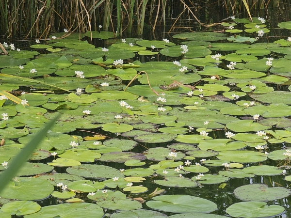 하얀 어리연꽃은 이름이 연꽃이지만 연이나 수련처럼 수련과가 아닌 조름나물과에 속하는 여러해살이 수생식물로 지름 1~1.5cm 크기의 하얀 꽃을 피우는 것이 특징이다.