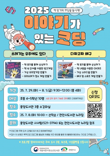 중앙도서관은 국립어린이청소년도서관이 주관하는 ‘2025 이야기가 있는 코딩’ 공모사업에 선정됨에 따라 이번 프로그램을 추진하게 됐다.