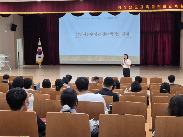 이번 연수는 고충상담원의 학교 현장 대응 역량을 강화하고 성평등한 조직문화 조성을 증진하기 위해 마련된 것으로 여성가족부 승인을 받아 경상남도교육청이 자체 운영했으며 진주성폭력피해상담소 정윤정 소장과 경북대학교 인권센터 박빛나 전문위원이 강사로 참여했다.