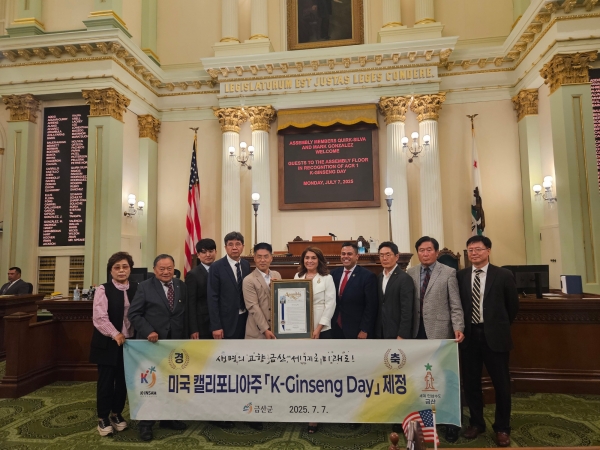 [충청뉴스큐] 미국 캘리포니아주 의회는 지난 7일 ‘한국 인삼의 날’ 기념일 제정을 공식적으로 의결했다.