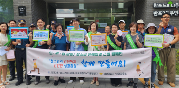 이러한 문제를 해결하고자 마련된 이번 청소년 보호 캠페인에는 이숙자 위원장과 함께 서초구 반포2동, 방배경찰서 서래 파출소, 청소년지도위원, 아동지킴이, 자율방범대 등 20 여명의 지역사회 인사들이 참석했다.