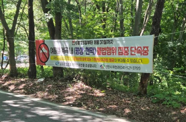 신기명 하천과장은 "주요 계곡 내 무단점용 등 불법행위 근절을 위한 단속 및 예방활동을 강화해 피서철 안전하고 쾌적한 하천을 시민에게 제공할 수 있도록 최선을 다하겠다"고 말했다.