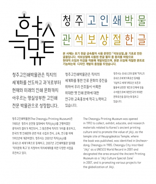 청주고인쇄박물관 관계자는 “이번에 개발한 청주 석보상절체는 시인성도 좋고 현대적 느낌의 디자인이어서 팸플릿 등 홍보물을 비롯한 다양한 인쇄매체에 활용할 수 있다”며 “고문서를 기반으로 개발된 청주 석보상절체가 널리 사용돼, 고인쇄에 대한 시민들의 관심도 높아지길 기대한다”고 밝혔다.
