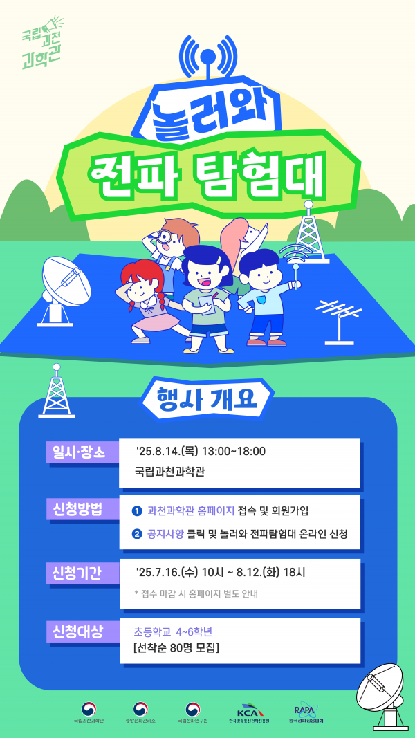 [충청뉴스큐] 국립과천과학관은 오는 8월 14일 제4차 대국민 전파교실 ‘놀러와 전파탐험대'를 개최한다고 밝혔다.
