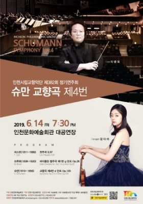 인천시립교향악단 제382회 정기연주회 슈만 교향곡 제4번이 6월 14일 금요일 저녁 7시 30분 인천문화예술회관 대공연장에서 열린다. 티켓은 R석 1만원, S석 7천원이며, e음카드 소지자는 30% 할인된 가격으로 음악회를 즐길 수 있다.