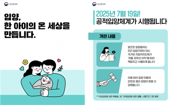 [충청뉴스큐] 보건복지부와 아동권리보장원은 7월 19일부터 국가와 지방자치단체가 입양 절차 전반을 책임지고 수행하는 공적 입양체계 개편이 본격 시행된다고 밝혔다.