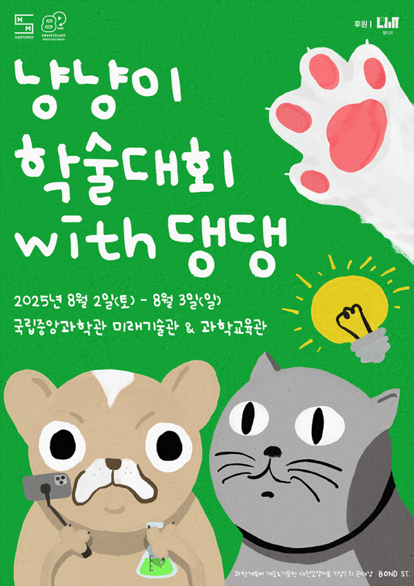 [충청뉴스큐] 국립중앙과학관은 8.8 세계 고양이의 날과 8.26 세계 개의 날을 맞아 우리 삶에 친숙한 두 동물을 주제로 ‘댕댕도 함께하는 냥냥이 학술대회 ’ 행사를 오는 8월 2일부터 8월 3일 양일간 개최한다.