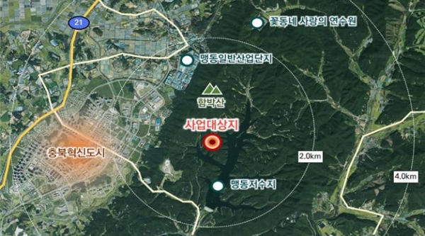 이번 사업은 음성군 맹동면 군자리 산46-4번지, 맹동저수지 일원에 오는 2026년까지 총사업비 61억9500만원이 투입된다.
