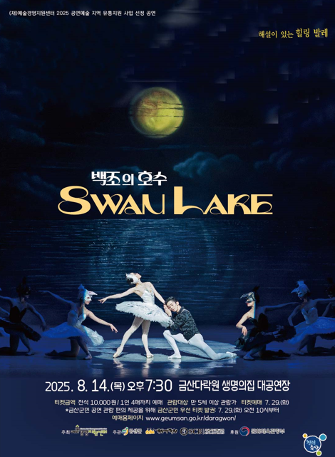 [충청뉴스큐] 금산군은 8월 14일 오후 7시 30분 금산다락원 생명의집 대공연장에서 세계 3대 발레극 중 하나로 꼽히는 ‘백조의 호수’ 공연을 선보인다.