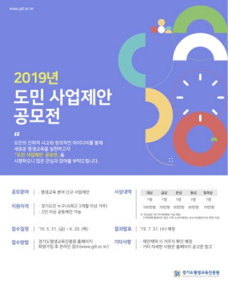 [충청뉴스큐] 경기도평생교육진흥원은 오는 6월 20일까지 평생교육 사업 아이디어를 공모한다고 31일 밝혔다.