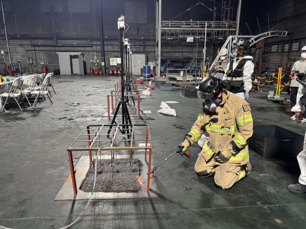 이번 실험은 국제표준의 금속화재 적응 소화기의 성능 요구사항과 시험방법 등을 준용해, 마그네슘 합금칩과 분말을 가연물로 활용해 진행됐다.