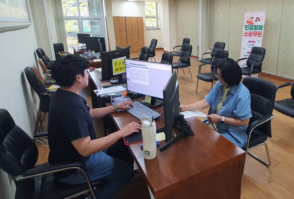 “찾아가는 신청 서비스”는 대상자가 주소지 면·동사무소에 유선 신청하면 공무원이 해당 가구를 방문해 신속하게 신청·접수 및 소비쿠폰을 지급하는 서비스이다.