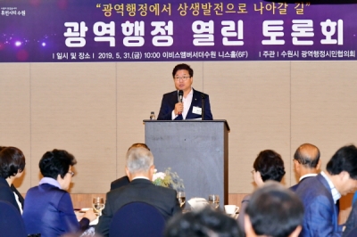 수원시는 인구 규모에 걸맞은 광역행정체계를 구축하고, 인접 자치단체와 상생협력 기반을 만드는 것을 목표로 2013년 4월 광역행정시민협의회를 출범시켰다. 경제·여성·문화예술·체육·종교계 등 지역 오피니언 리더 50여 명이 위원으로 활동했다.